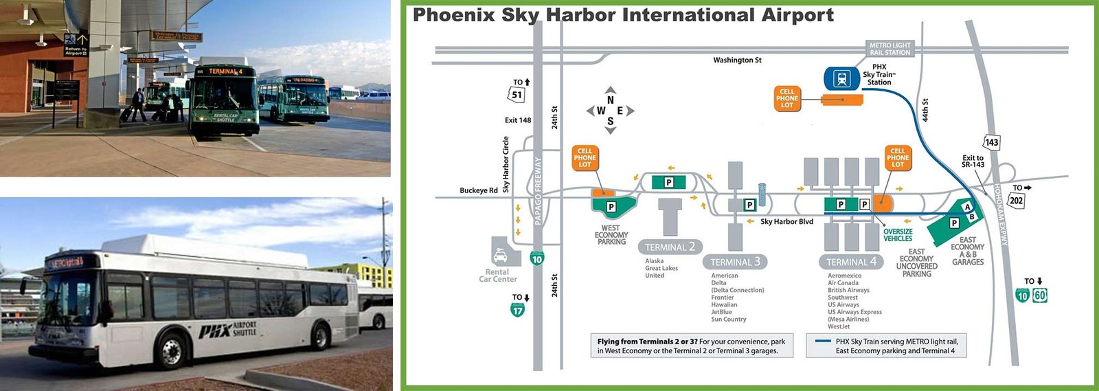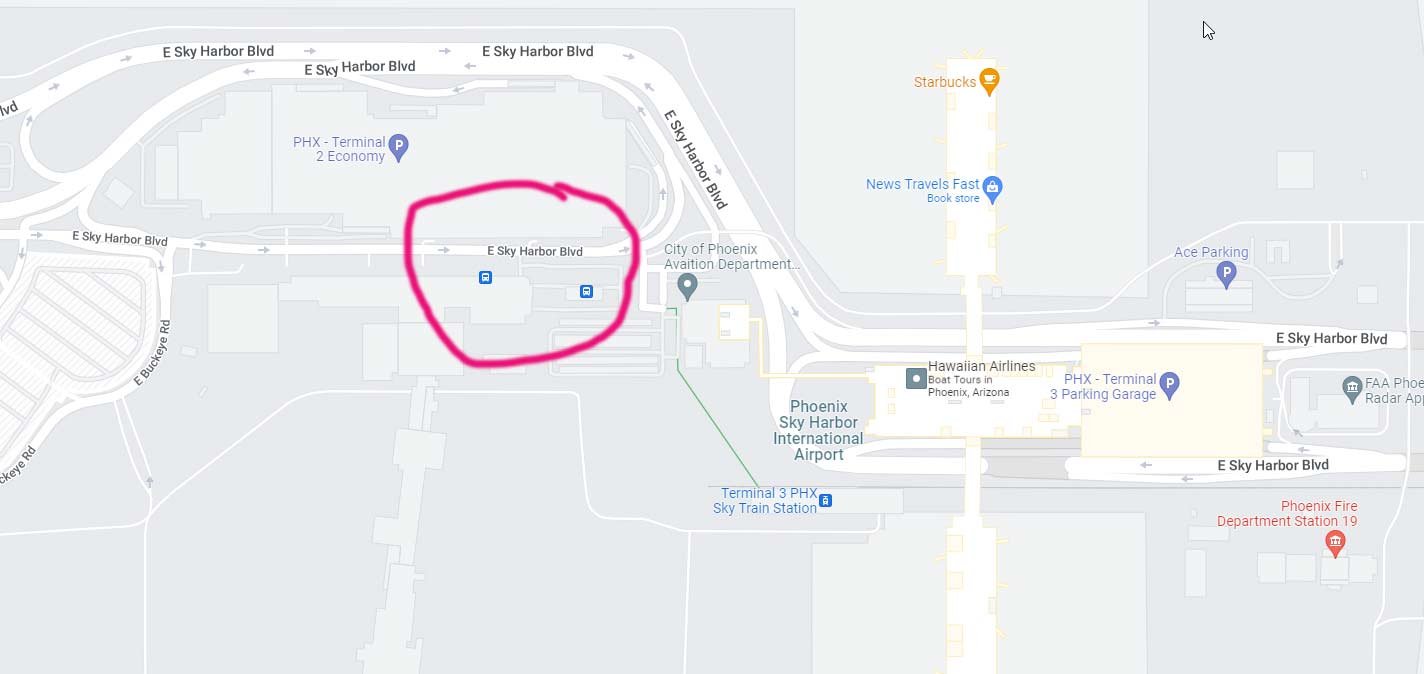 Phoenix Airport bus location and route
