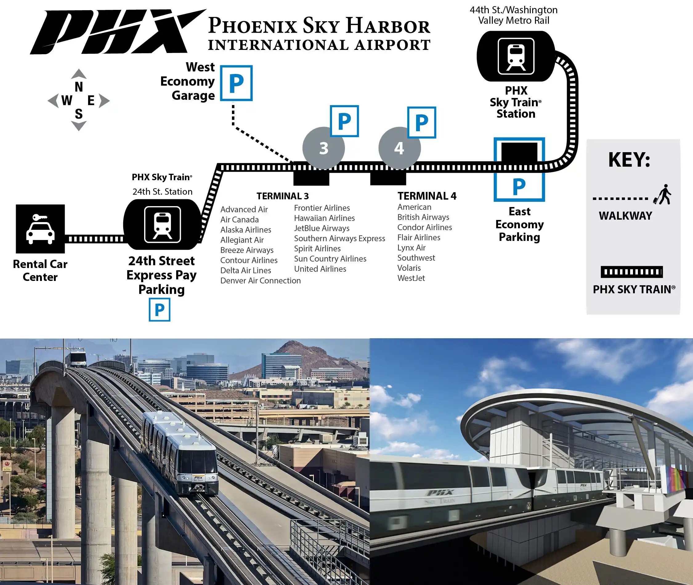 - Links the Rental Car Center to the 44th Street PHX Sky Train® Station.